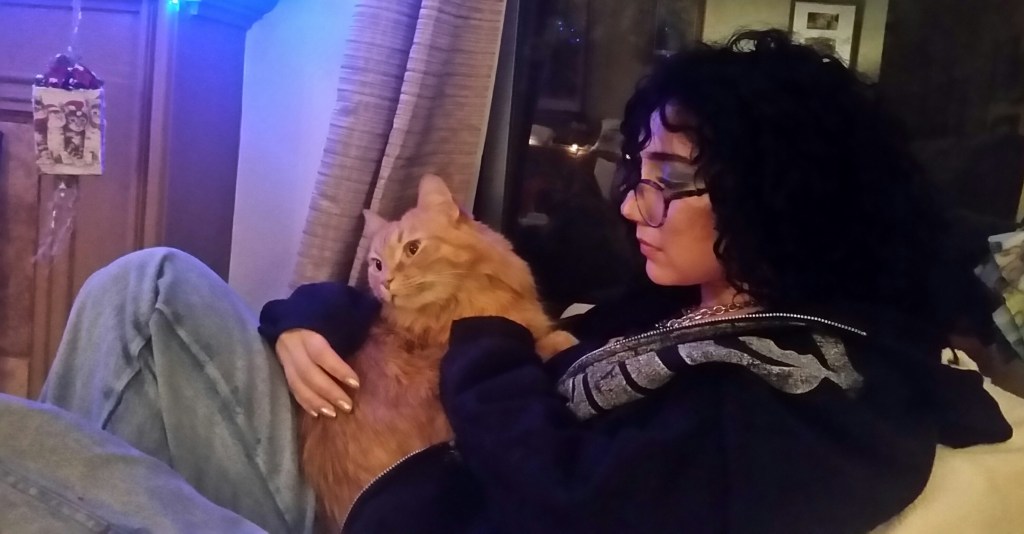 Here is my “little girl” with one of our cats.