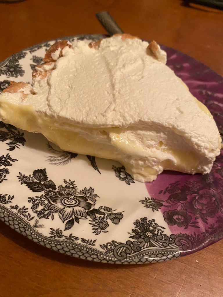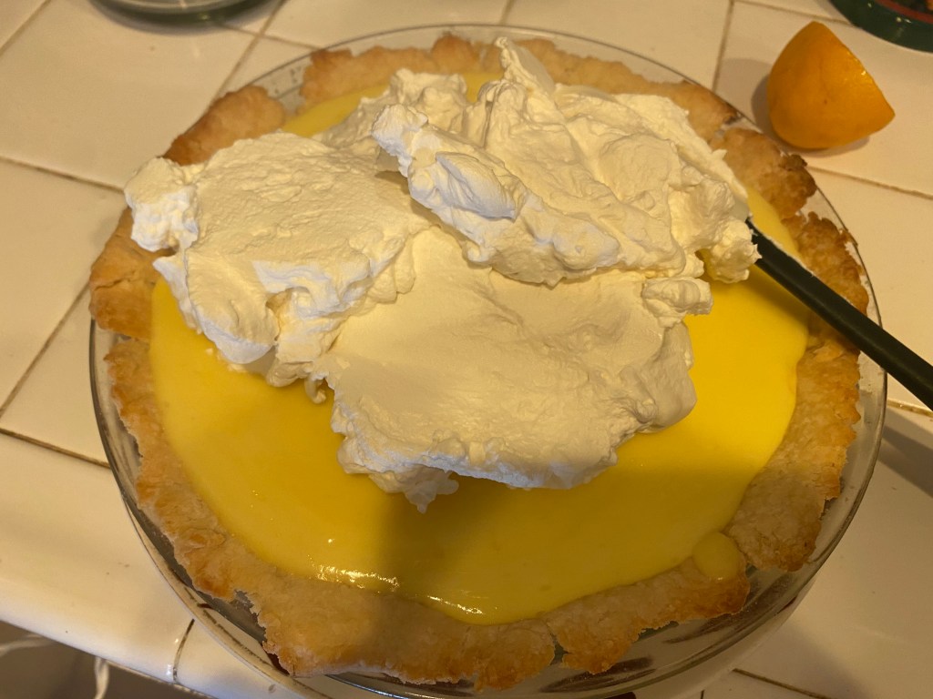 I love to cook but consider myself a kind of “fly by the seat of your pants” type of personality in the kitchen. With exotic spices like sumac, turmeric and herbes de Provence readily available, experimenting is fun and easy to do. Over the years I’ve learned to rely more on intuition and will hardly ever stay the course of a recipe. I also take into account the tastes of my loved ones — Kevin loves a lot of flavor in his food, so I usually amp up the seasonings. Betsy and I are fans of cheese, so on our servings I might add a little (who am I kidding, a lot) of extra parmesan. But when it comes to certain recipes, I stick to them like glue and follow directions verbatim. The step by careful step of whipping up a Lemon Cream Pie is one such example.